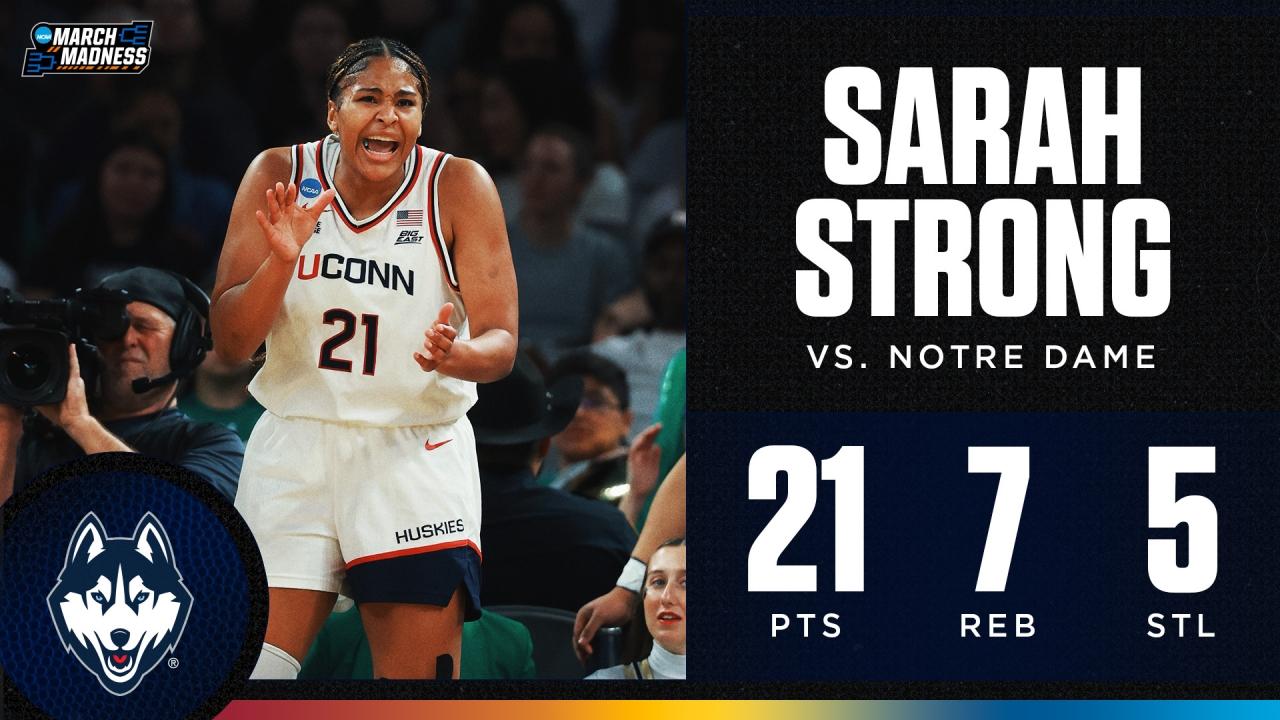 The Huskies are riding high on a nation-leading 54-game win streak, having not dropped a contest since last February. While it's not always as simple to say the best team with the best player is likely to win, National Player of the Year Sarah Strong sure does make a compelling case for the 47.92 percent of brackets that had UConn holding the trophy on Sunday.