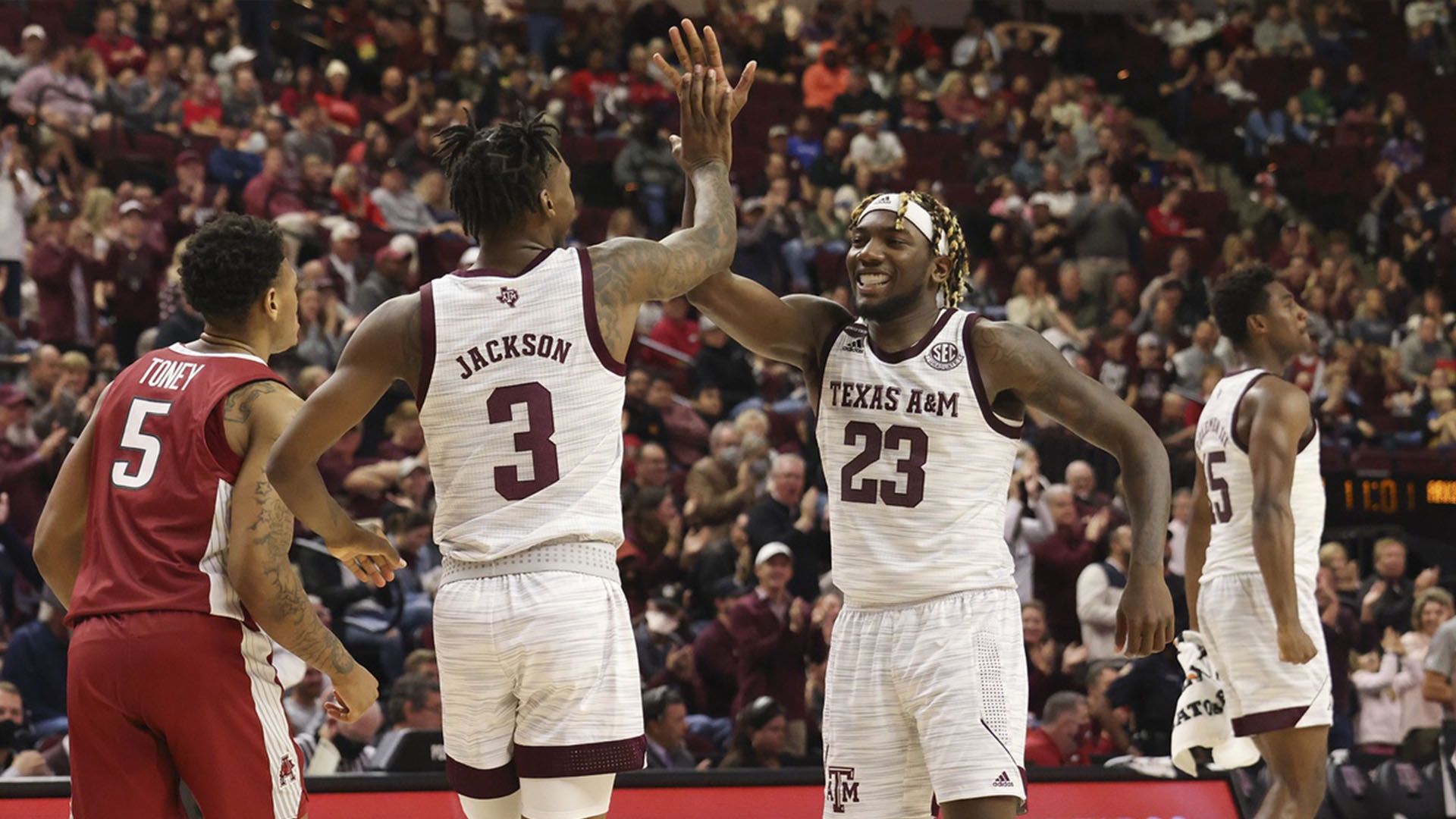 The Aggies beat Arkansas 86-81 to advance to 13-2 and 2-0 in the conference. They're putting up more than 77 points a game, even though no starter has an average higher than 10.5. Quenton Jackson is the top scorer with a 13.5 average coming off the bench. They're outscoring opponents 22.6-11 in points off turnovers.
