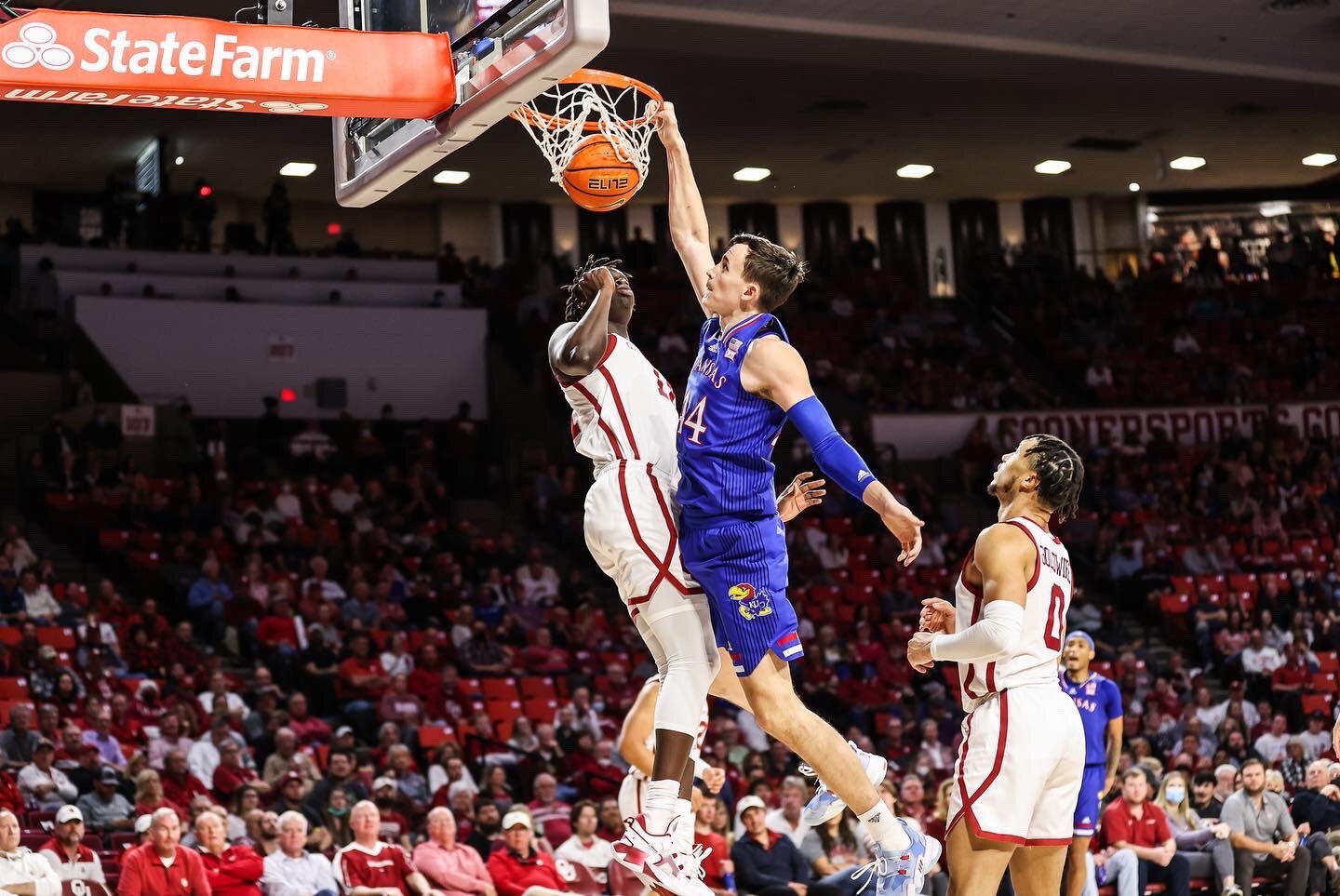 Both No. 5 Baylor and No. 7 Kansas squeezed out close wins against conference opponents. Baylor lost a significant first-half lead over West Virginia, trailing 54-53 with 8:37 left in the second half. Yet from there, the Bears went on a 13-5 run to pull away. That would be all the separation Baylor needed to hold on and win, ending a two-game losing streak.