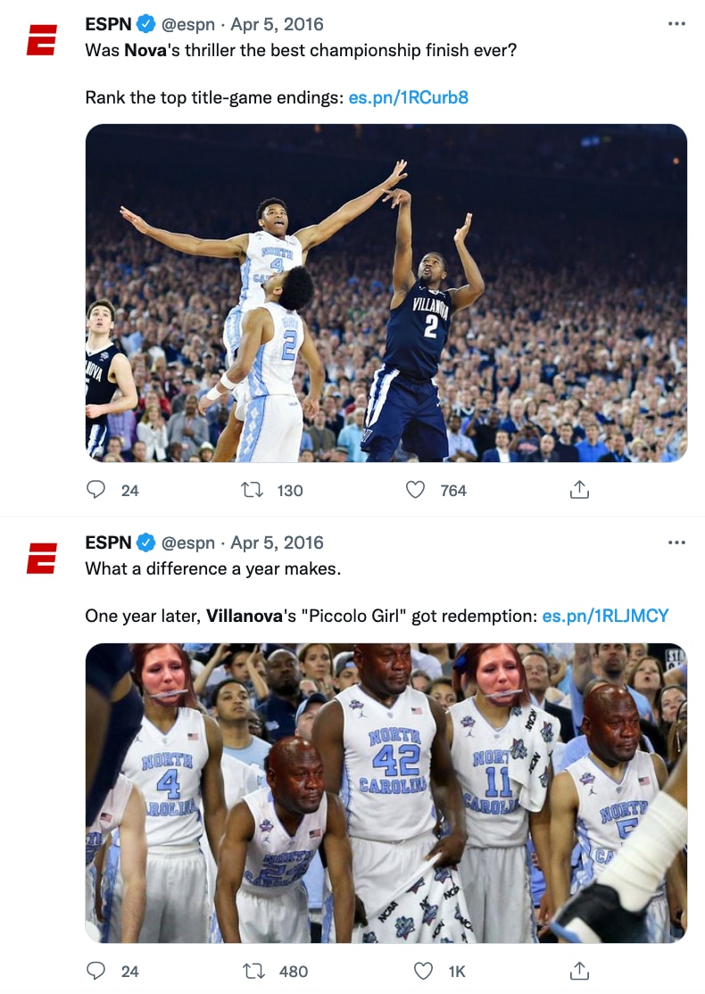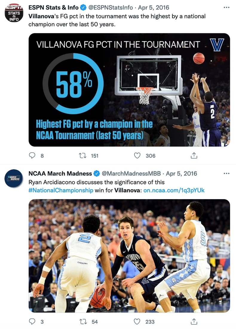 It was yet another edition of North Carolina versus Villanova in the NCAA tournament, which is today tied for the most-frequent NCAA tournament matchup between two programs. The Tar Heels and Wildcats have met six times in the Big Dance.