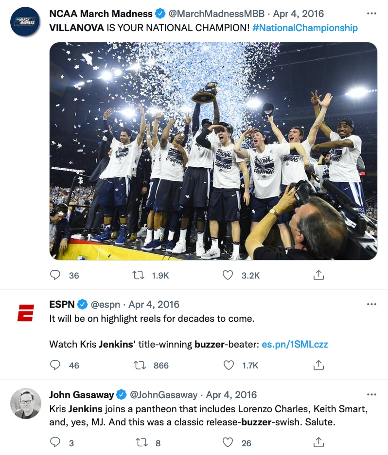 But this time, it was Villanova that came out on top, with a shot synonymous with the sport's single-elimination postseason that's both heartbreaking and hero-making.