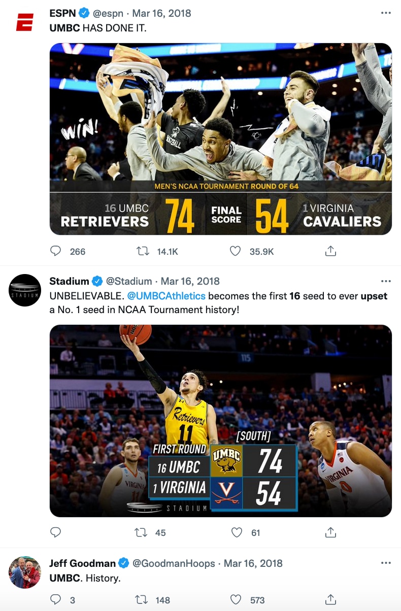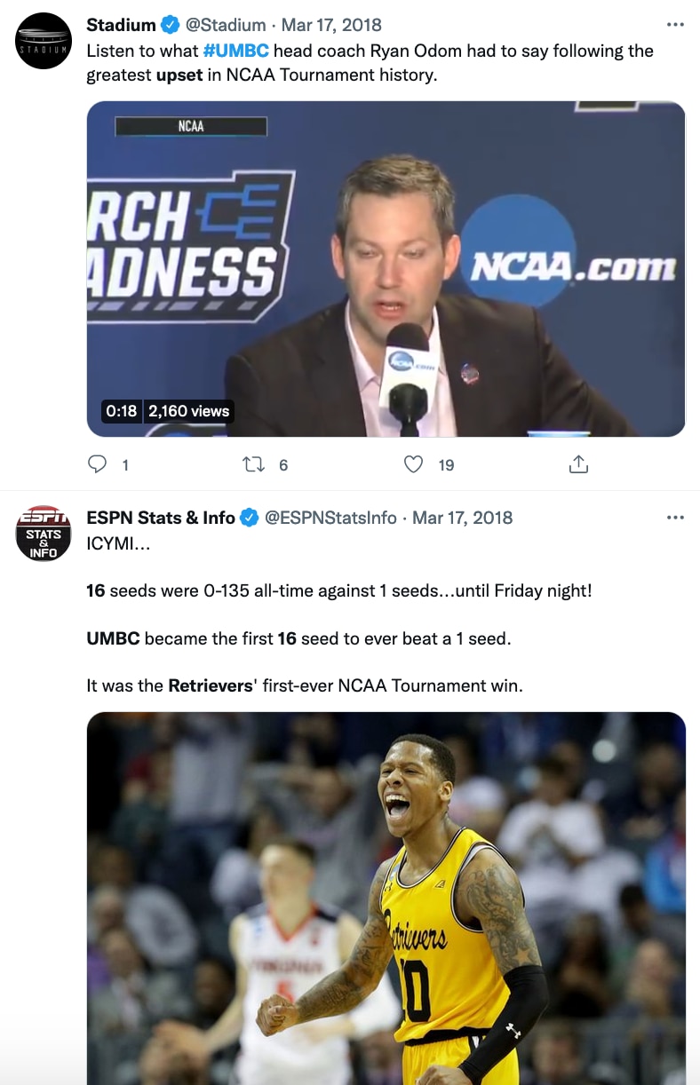 As part of krikya89.com's NCAA Video Vault series, we're diving into UMBC's historic upset as a No. 16 seed over No. 1 seed Virginia in the first round of the 2018 NCAA Tournament — the first 16-over-1 upset in the history of the men's tournament.