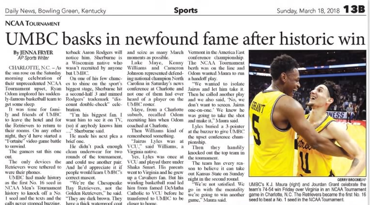 That was before NCAA tournament history was made. The school known by its four-letter acronym — with an undergraduate enrollment of roughly 10,000 students — became a household name overnight and busted brackets with one colossal Friday night upset.