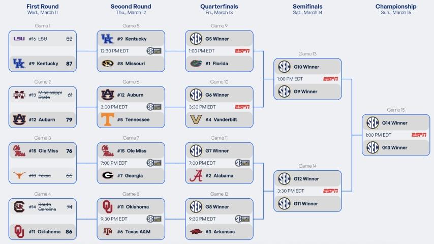 2026 SEC tournament: Bracket, schedule, scores for men's basketball