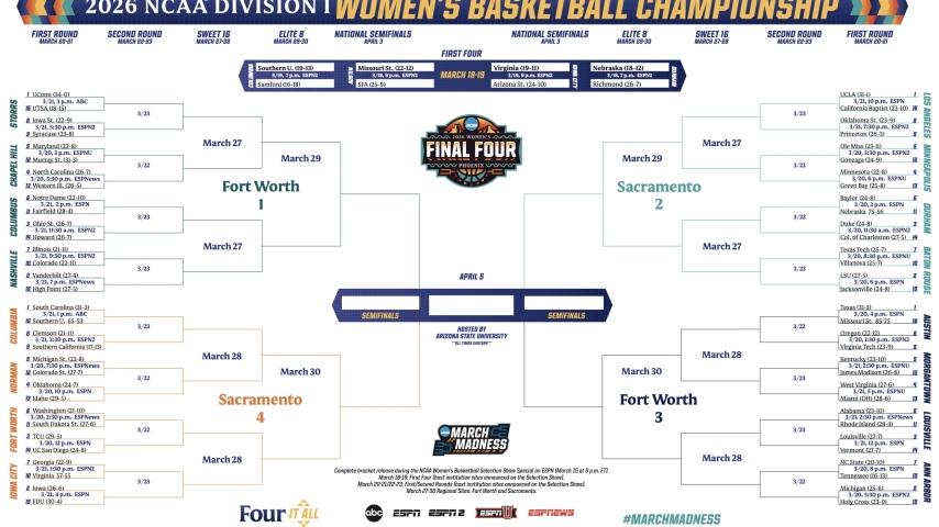 2026 March Madness: Women's NCAA tournament schedule, dates, times