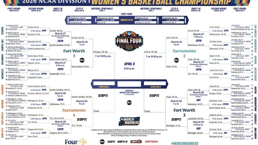 The 68-team bracket for the 2026 NCAA women's basketball tournament was announced on Sunday, March 15. Get the full tournament schedule below.