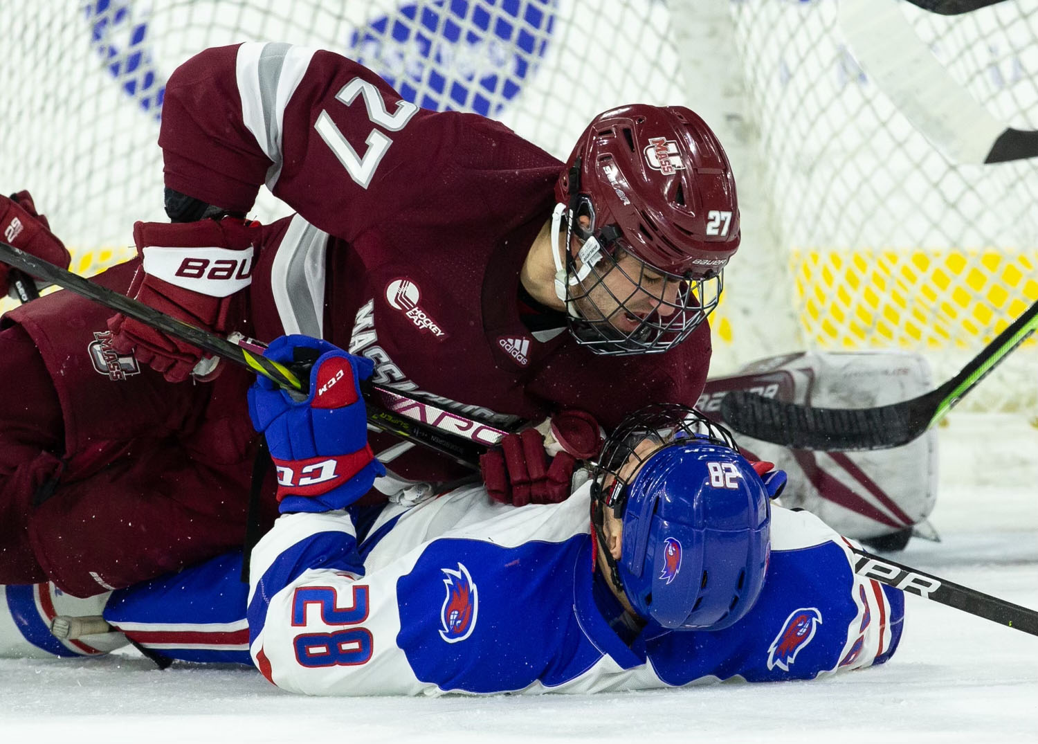 The next night was equally close with the score tied, 2-2, after 40 minutes. Roughly six minutes into the final frame, senior Ryan Barrow potted the eventual game-winner. Sophomore McKade Webster added an empty-netter to ensure the 4-2 win.