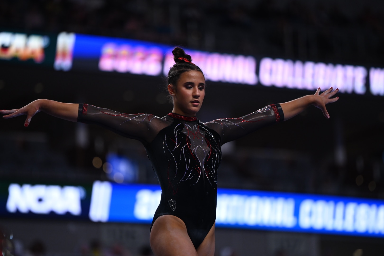 Our first of two semifinals is underway. No. 1 Oklahoma, No. 4 Utah, No. 5 Alabama and No. 8 Minnesota are competing for two spots in the team final on Saturday. The individual champions will also be crowned today.