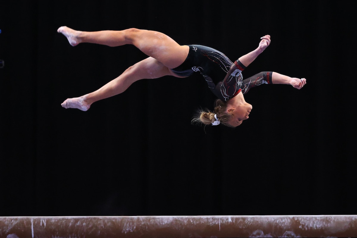 Auburn's Suni Lee won the national title on balance beam. Lee scored a 39.6750 on all four events and was a huge reason for Auburn's second place finish in semifinal II. She posted a 9.9625 on balance beam. Watch her performance here: