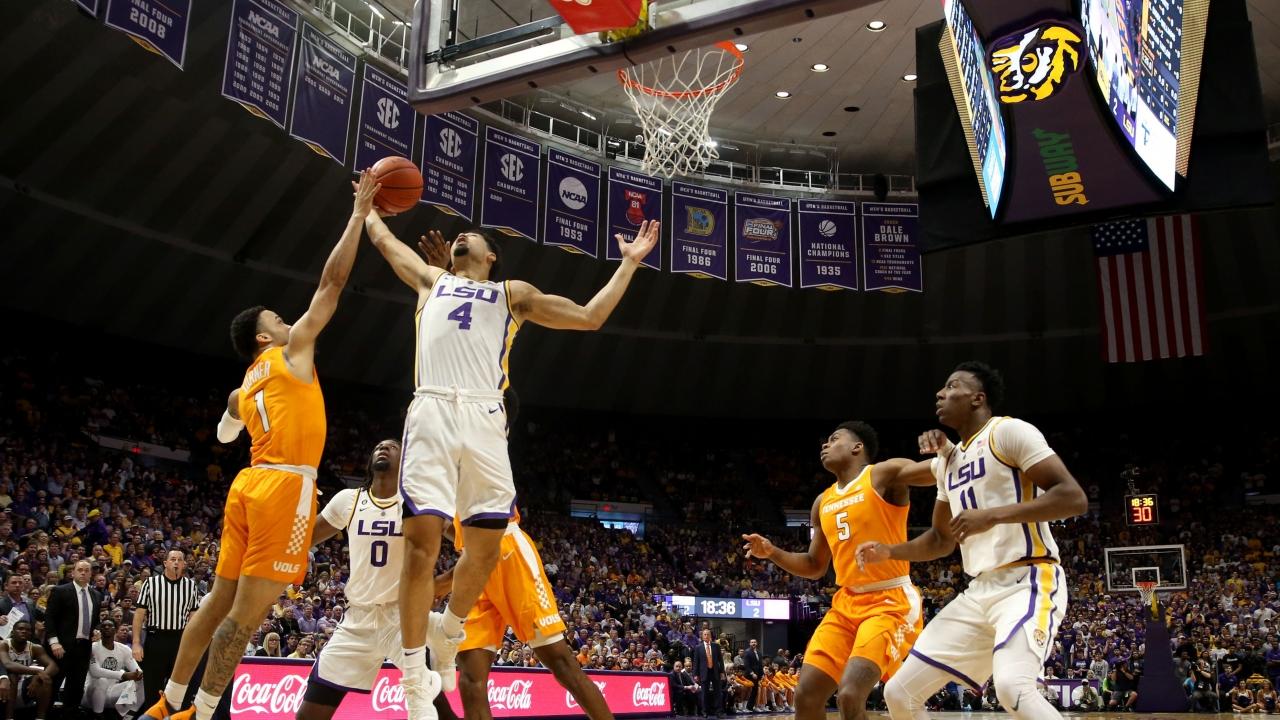 The No. 13 LSU Tigers pulled off an upset win at home on Saturday, taking down No. 5 Tennessee in overtime in front of a sold out crowd at the Pete Maravich Assembly Center in Baton Rouge. The win, powered by late-game heroics and timely free throw shooting, makes a three-way for first in the SEC standings.