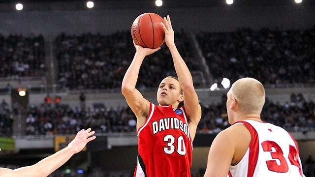 Davidson crushed No. 3 Wisconsin in the Sweet 16 at Ford Field in Detroit. Curry hit half his shots in the 17-point rout and poured in 33 points. Two days later, Kansas, with four future NBA players on the roster, forced Curry into 9 of 25 shooting, and his lowest-scoring output of the tournament - 25 points. On the final possession, Curry brought the ball up the court, a defender stopped him near the top-of-the-key, he passed to Richards who missed a long 3-pointer at the buzzer. It remains one of the best Cinderella runs in NCAA Tournament history and one of the top individual performances, impacted perhaps even more by Curry’s current status as arguably the best player in the world.)