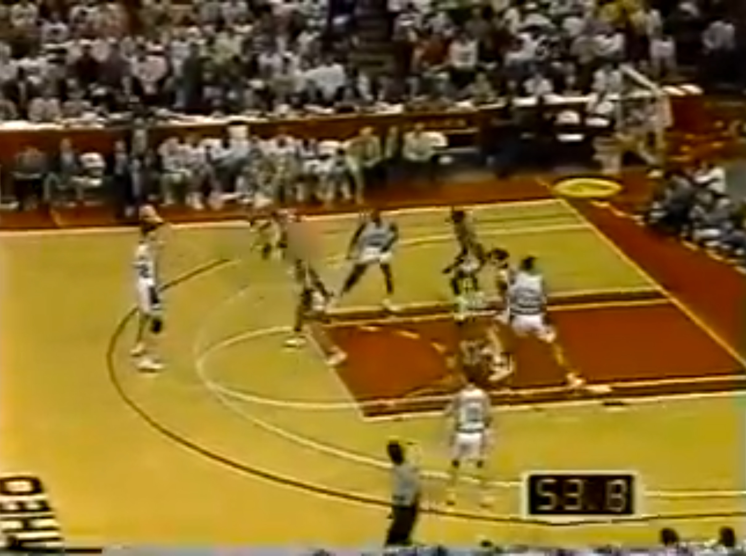 It's quite a sight to see all five St. John's players lined up around the lane as Duke shoots free throws with the lead late in the second round of the 1990 NCAA tournament.