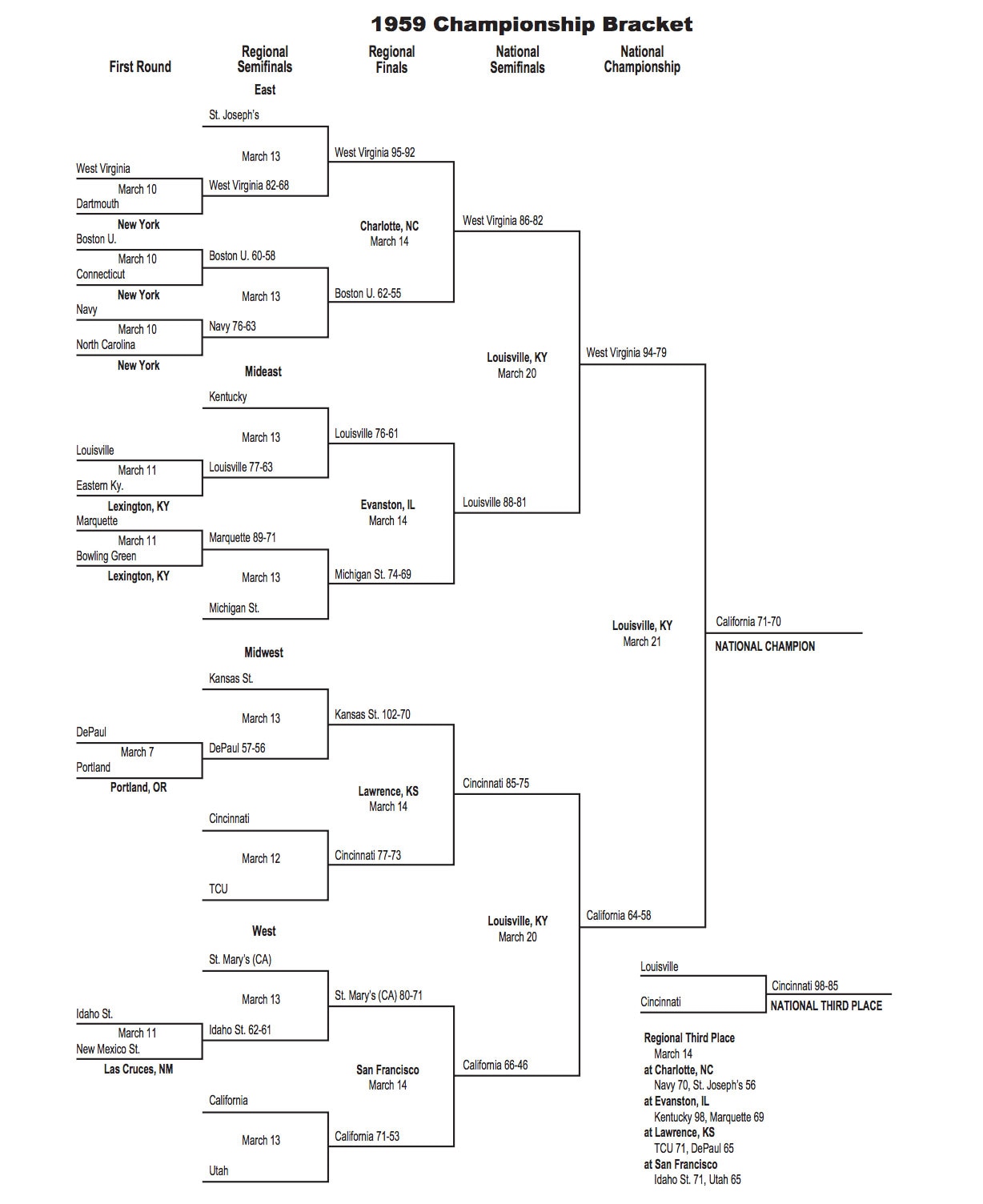 1959 NCAA tournament: Bracket, scores, stats, records