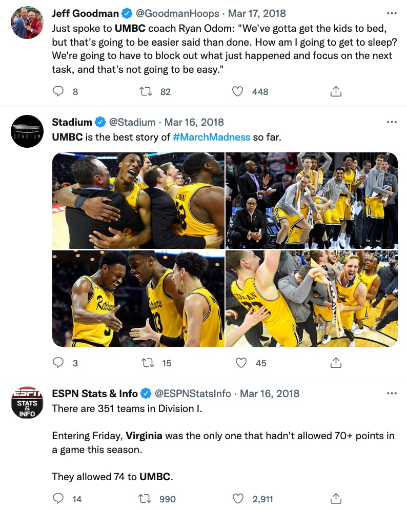 As part of krikya89.com's NCAA Video Vault series, we're diving into UMBC's historic upset as a No. 16 seed over No. 1 seed Virginia in the first round of the 2018 NCAA Tournament — the first 16-over-1 upset in the history of the men's tournament.