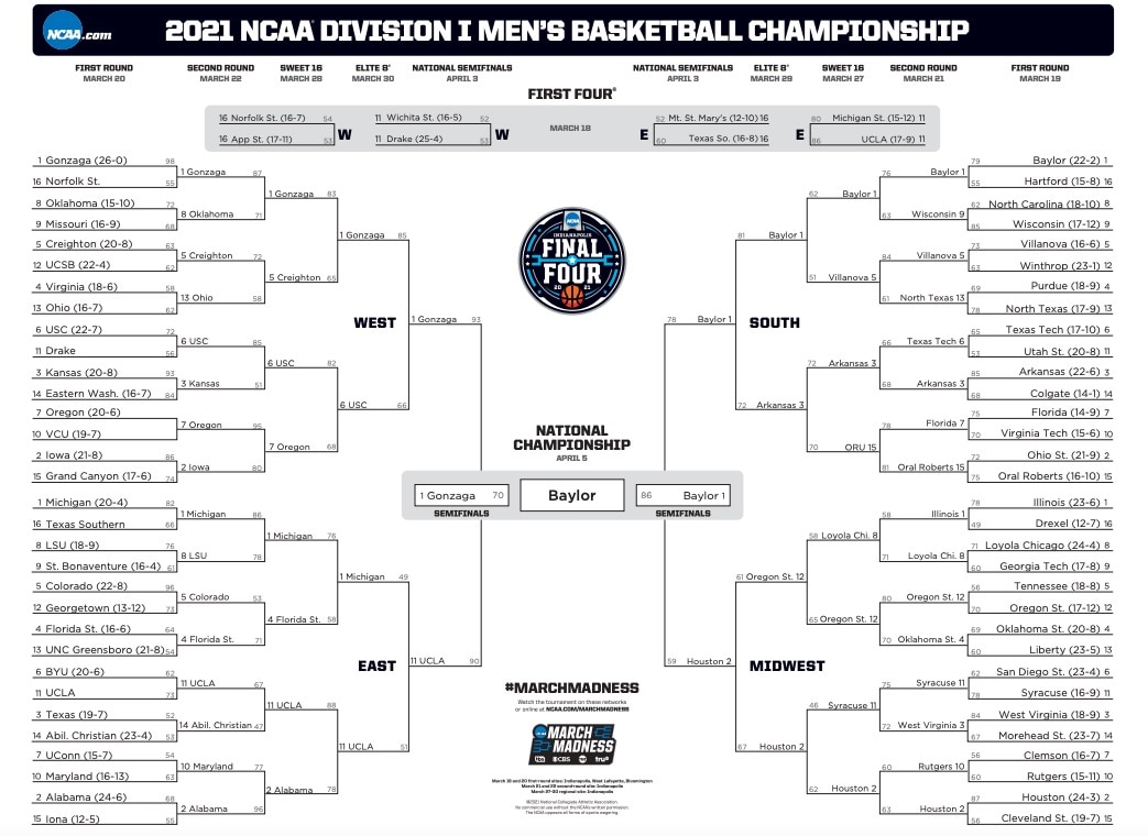 2021 NCAA bracket: Scores, stats, records for March Madness men’s tournament