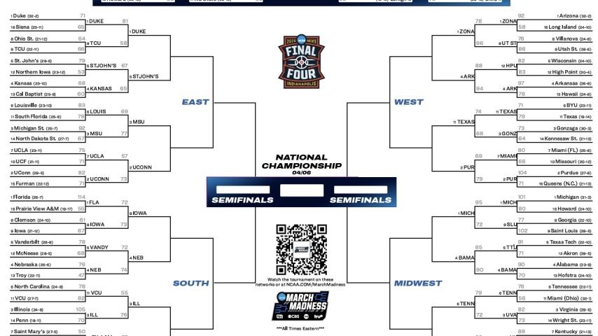 Here is the 2026 NCAA bracket for the March Madness men's basketball tournament. Get the bracket, schedule, scores, highlights and more here.