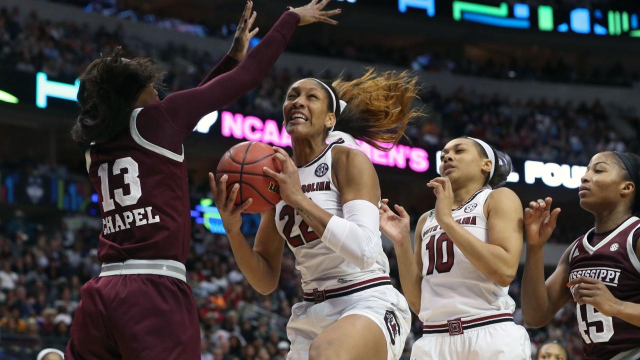 South Carolina's A'ja Wilson (22) had a monster double-double (23 points, 10 rebounds) in Sunday's win.