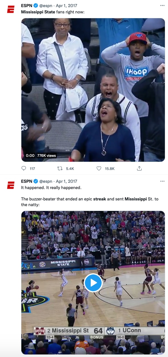 If you were on Twitter on March 31, 2017 and April Fool's Day, here's what your Twitter timeline may have looked like, as the sports world reacted to Mississippi State's epic buzzer-beater and historic upset.