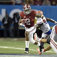 Henry broke a different record almost every week during a 2015 season where he carried the ball over 300 times for the Crimson Tide. The bruising back tallied an impressive 1,986 rushing yards on the ground, breaking the school record and the SEC record in back-to-back weeks. Henry broke five records in the 2015 Iron Bowl alone, including the Alabama single-season record for rushing touchdowns (22, thought he scored again in the SEC championship to up his mark to 23) and the Alabama single-season record for 200-yard rushing games (four). Henry ran rampant throughout the season, finishing with an impressive 5.9 yards per carry average.