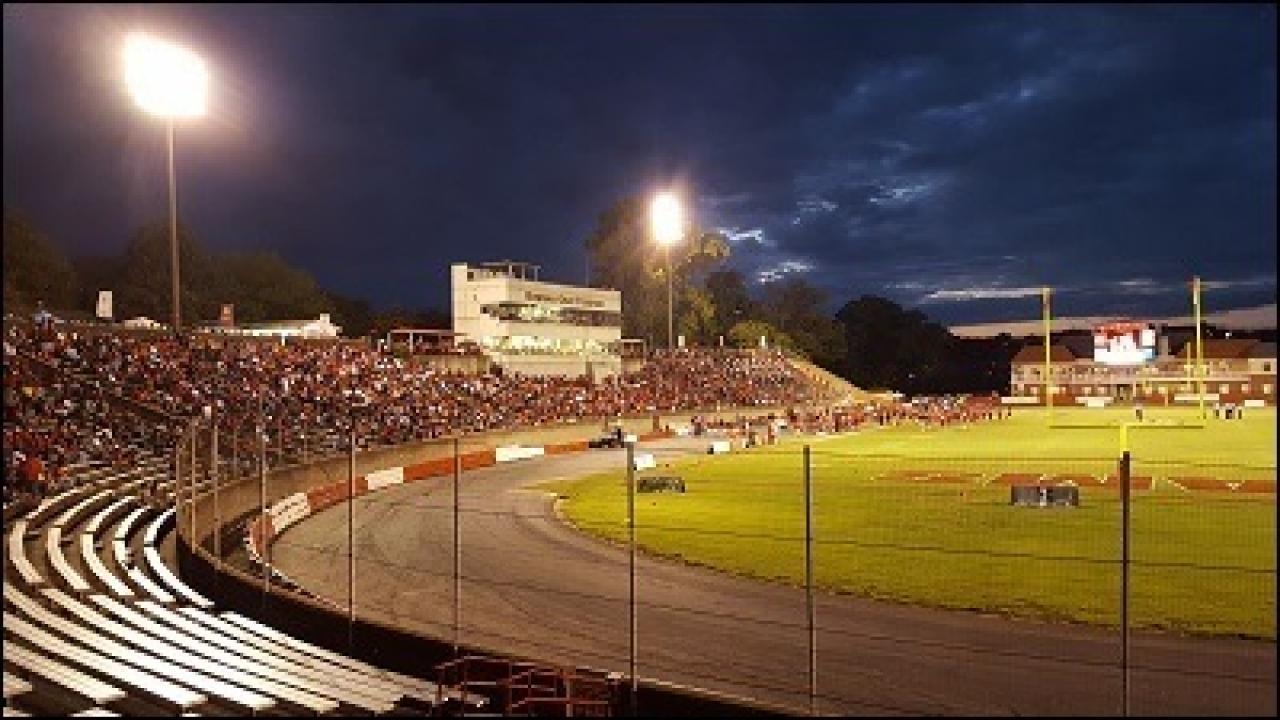 Come for the football, stay for the car race. Plenty of DII football stadiums also host the track and field teams, encircling the playing field with a state of the art track. But how about a NASCAR track?That's what you'll see when taking in a Rams game at Bowman Gray Stadium. A NASCAR-sanctioned quarter-mile track surrounds the playing field. Don't worry, both events have yet to happen at the same time.