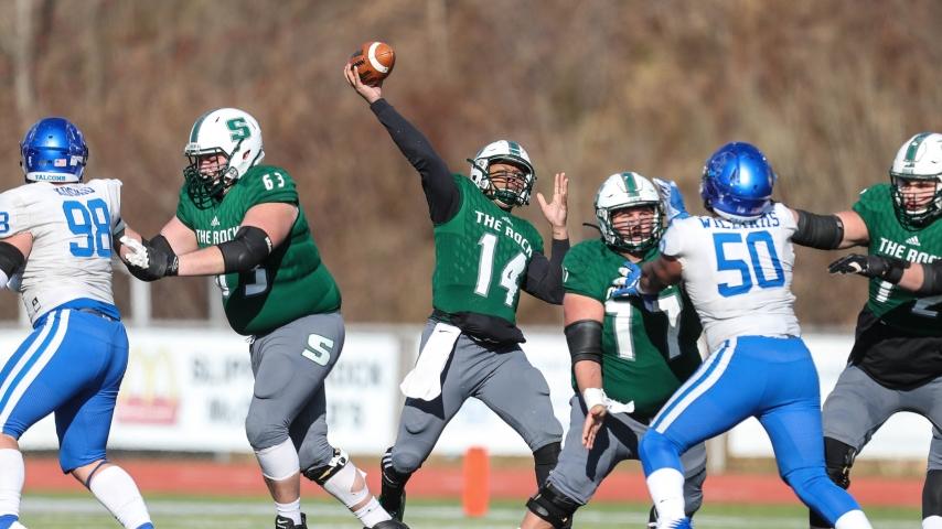Roland Rivers III and Nate Gunn are both Harlon Hill Trophy finalists and for good reason. Rivers III combined for eight touchdowns in Slippery Rock's 65-59 quarterfinals win over Notre Dame (OH) bringing his total touchdown passes to 50 on the season. Gunn is just a machine. He put up his third straight season with at least 1500 yards and set a career-high with 26 touchdowns. We're talking about two players that have pretty much looked unstoppable for the better part of two years.