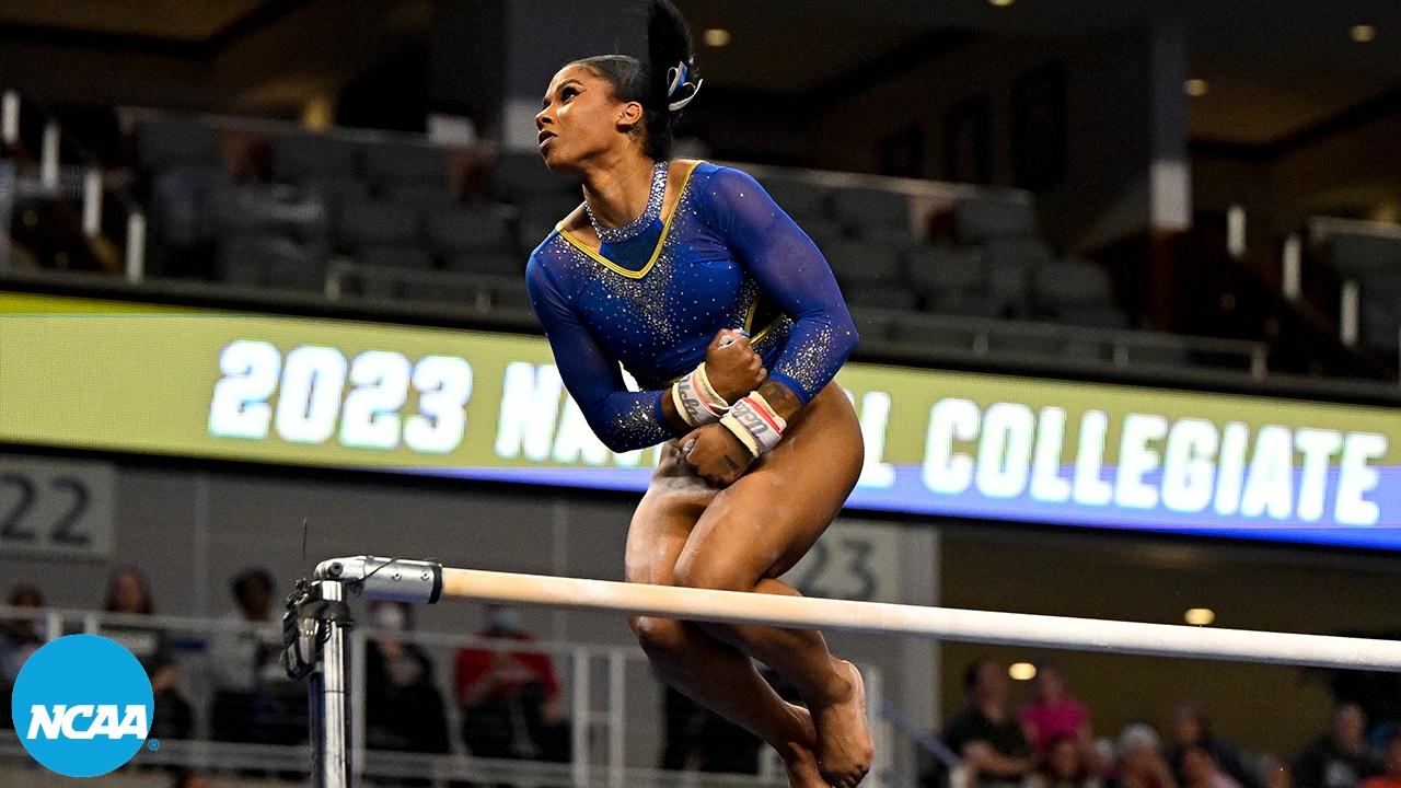 Jordan Chiles - Perfect 10 on bars at 2023 NCAA gymnastics semifinals