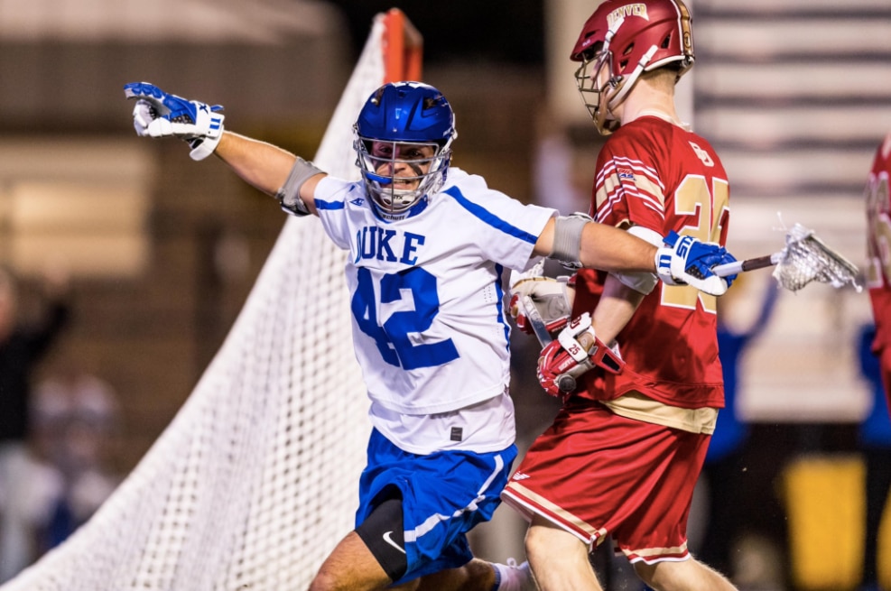 This weekend's slate of games was exciting out of the gate, starting with No. 1 Duke's 15-12 come-from-behind win over No. 3 Denver. The Blue Devils scored seven unanswered goals to secure the victory. Attacker Joe Robertson led the way for Duke with four goals, all coming in the final frame.