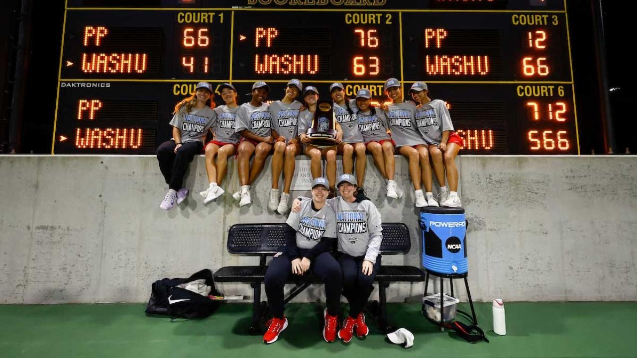WashU won the 2025 DIII women's tennis team national title, defeating Pomona-Pitzer, 4-3. Junior Nina Moravek defeated sophomore Leticia Bazua Vazquez to cement the victory β the program's first-ever national championship.