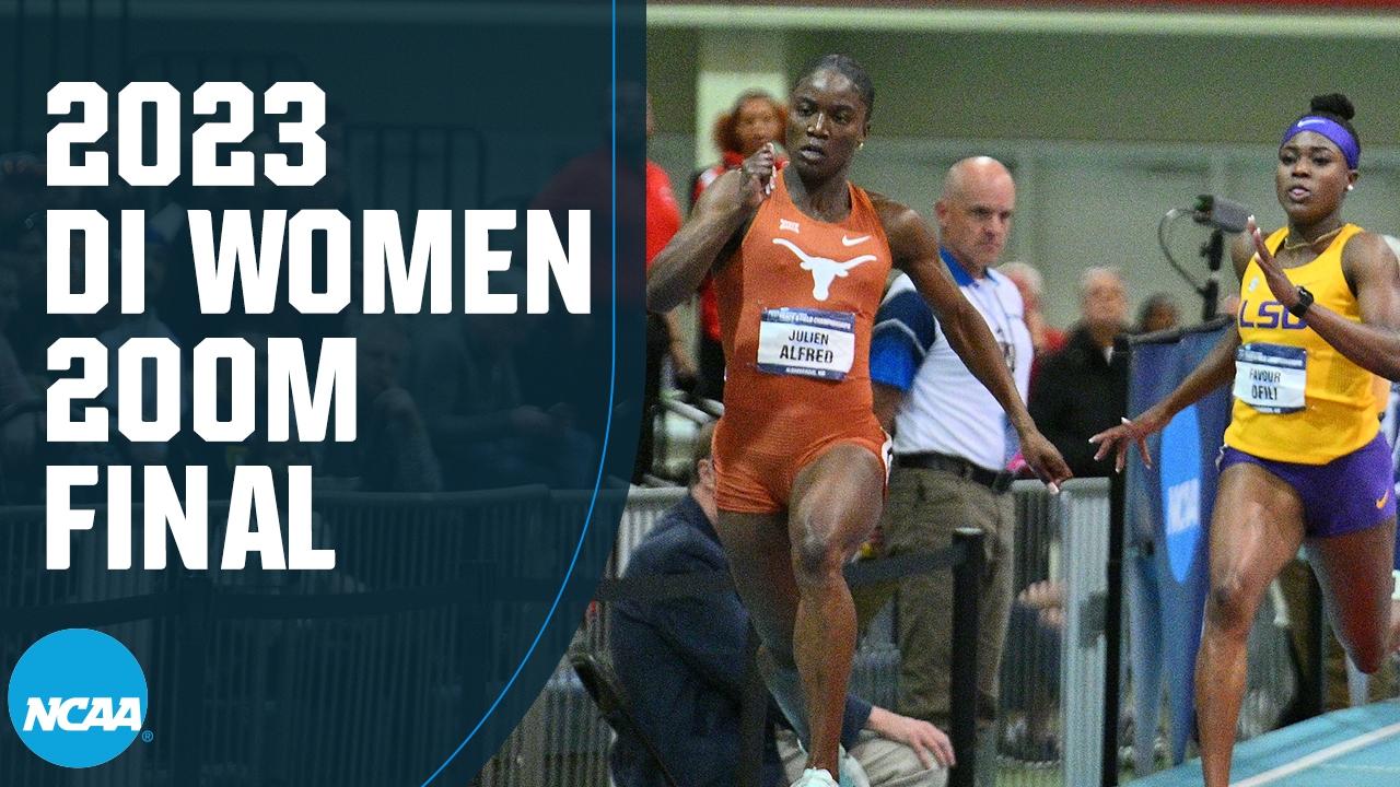 The 60 meter record fell yet again as Julien Alfred ran 6.94 seconds to win the 2023 DI indoor title. She wasn't done with just the 60; she broke the 200 meter record in 22.01 seconds to win the 2023 DI indoor title.