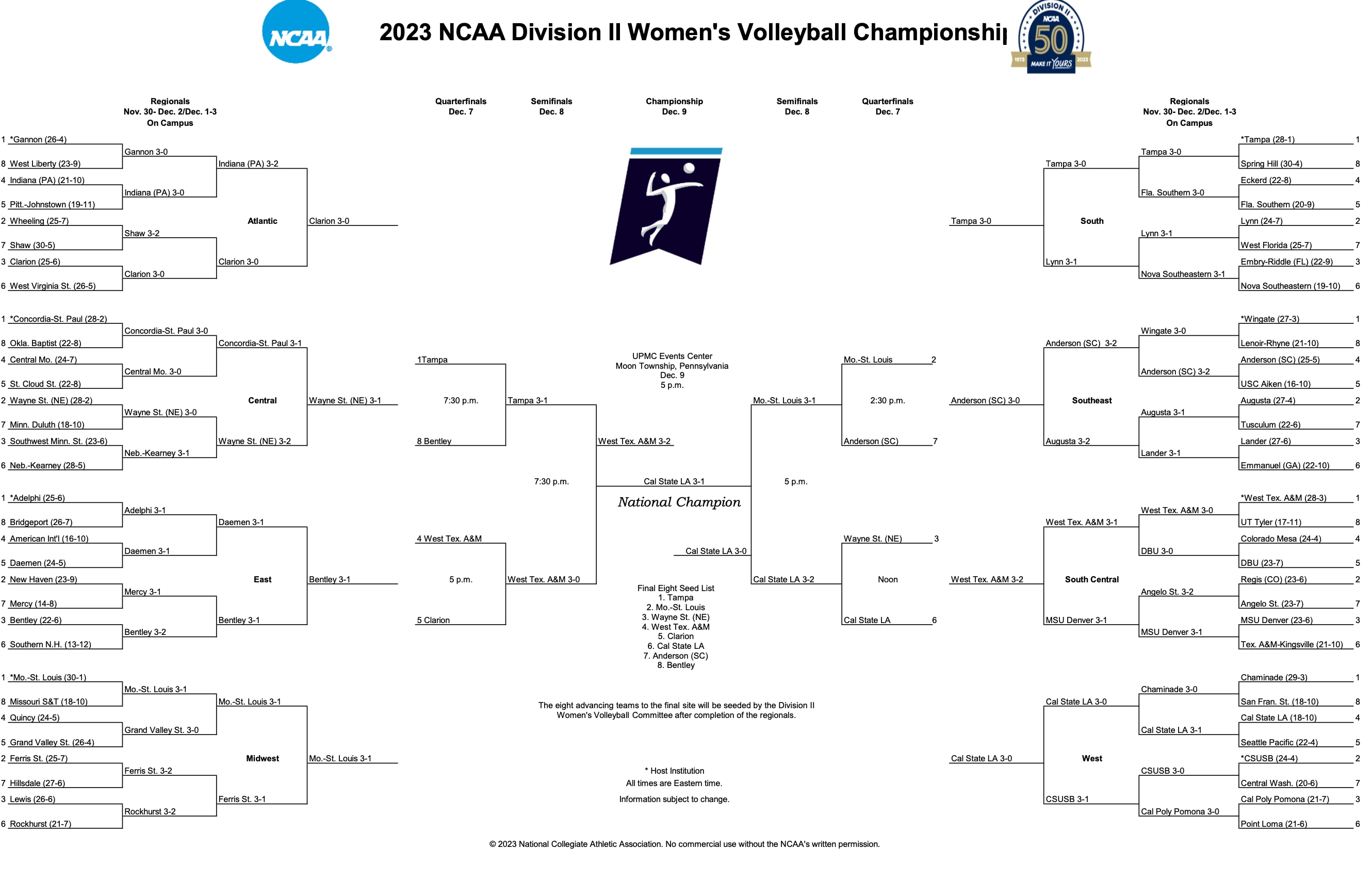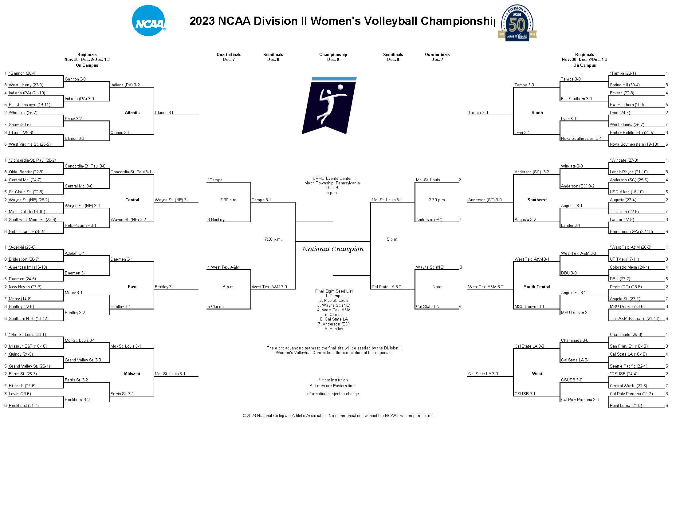 Here are the results from the 2023 DII women's volleyball championship: