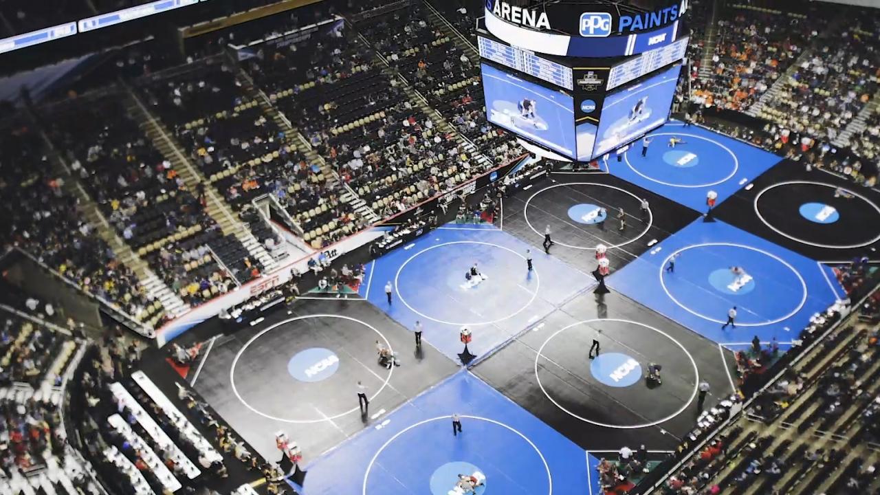 Watch a wrestling time-lapse as the championships go from 8 mats to 1